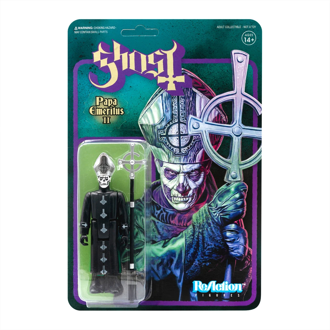 The Super7 x Ghost collaboration continues with the Papa Emeritus II 3.75-inch ReAction Figure! The second incarnation of Papa comes with his Grucifix staff as an accessory.
